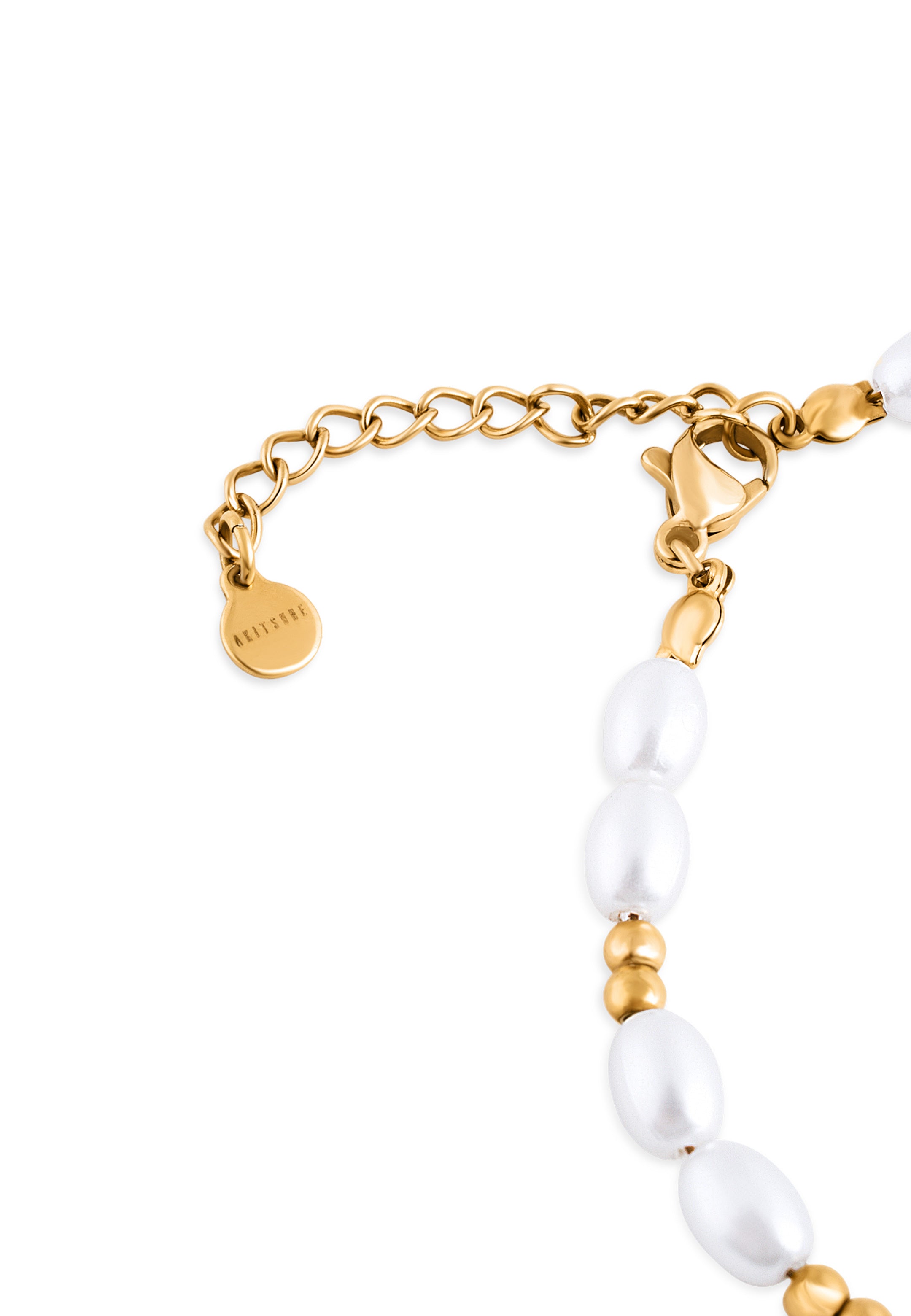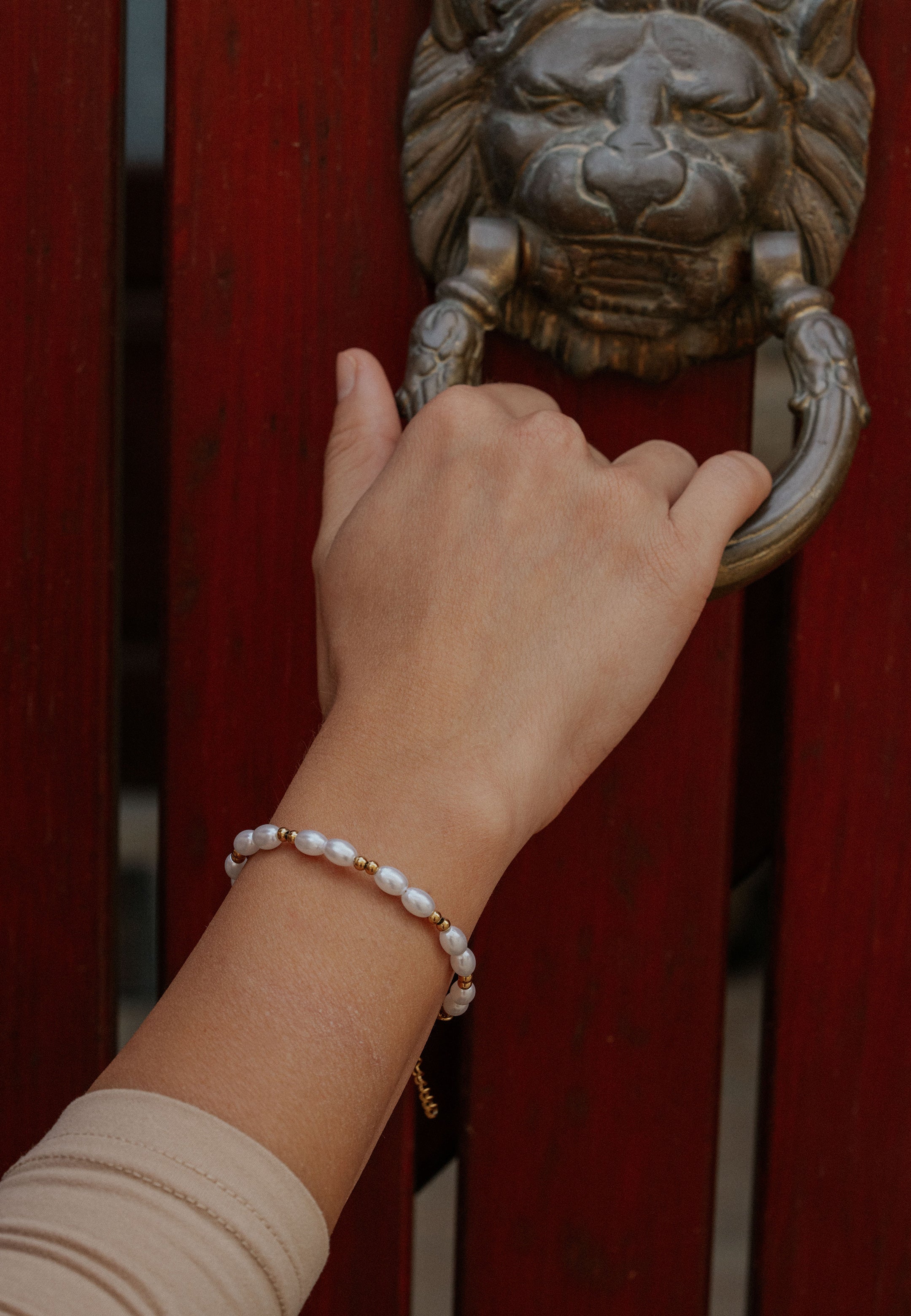 Elegante Schlichtheit mit selbstbewusstem Glanz. Das Confidence Armband verbindet hochwertige Kunstperlen mit dezenten goldfarbenen Akzenten. Sein leichtes, minimalistisches Design macht es zum perfekten Begleiter für jeden Tag – ob einzeln getragen oder zusammen mit deinen Lieblingsstücken.