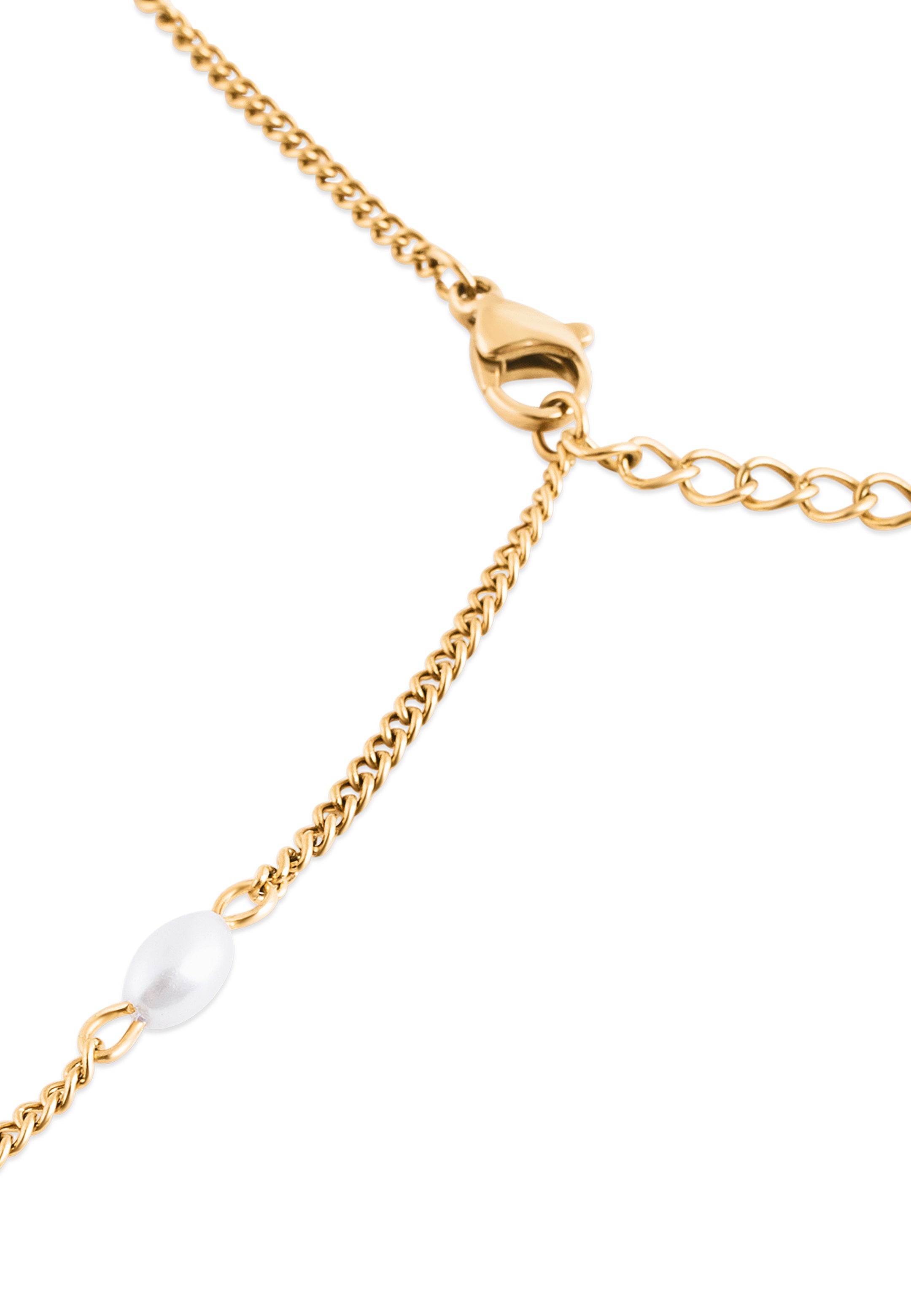 Eleganza discreta, dettagli raffinati. Il Bracciale Devotion unisce perle finte di alta qualità a perline dorate lucide, distanziate con delicatezza lungo una sottile catena. Leggero e senza tempo, è il pezzo perfetto da indossare ogni giorno, da solo o sovrapposto ad altri.