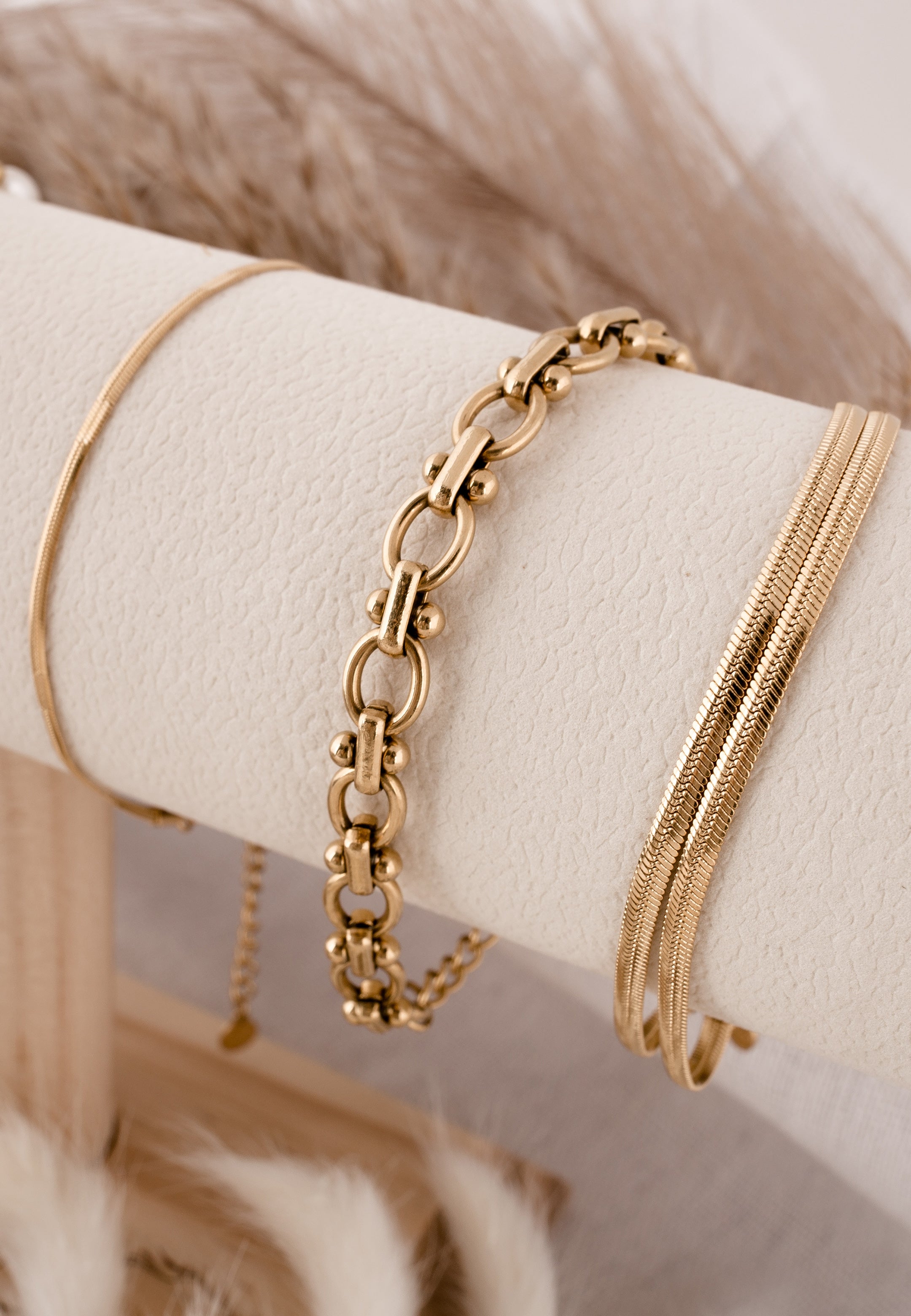 Un bracciale che rappresenta la resilienza – strutturato, sicuro di sé e senza tempo in oro.