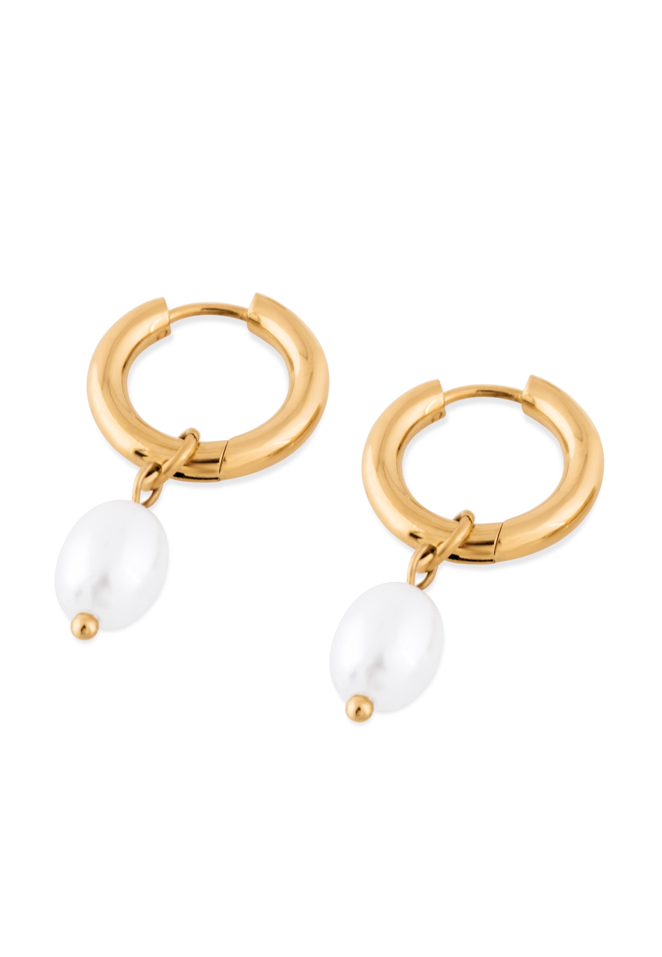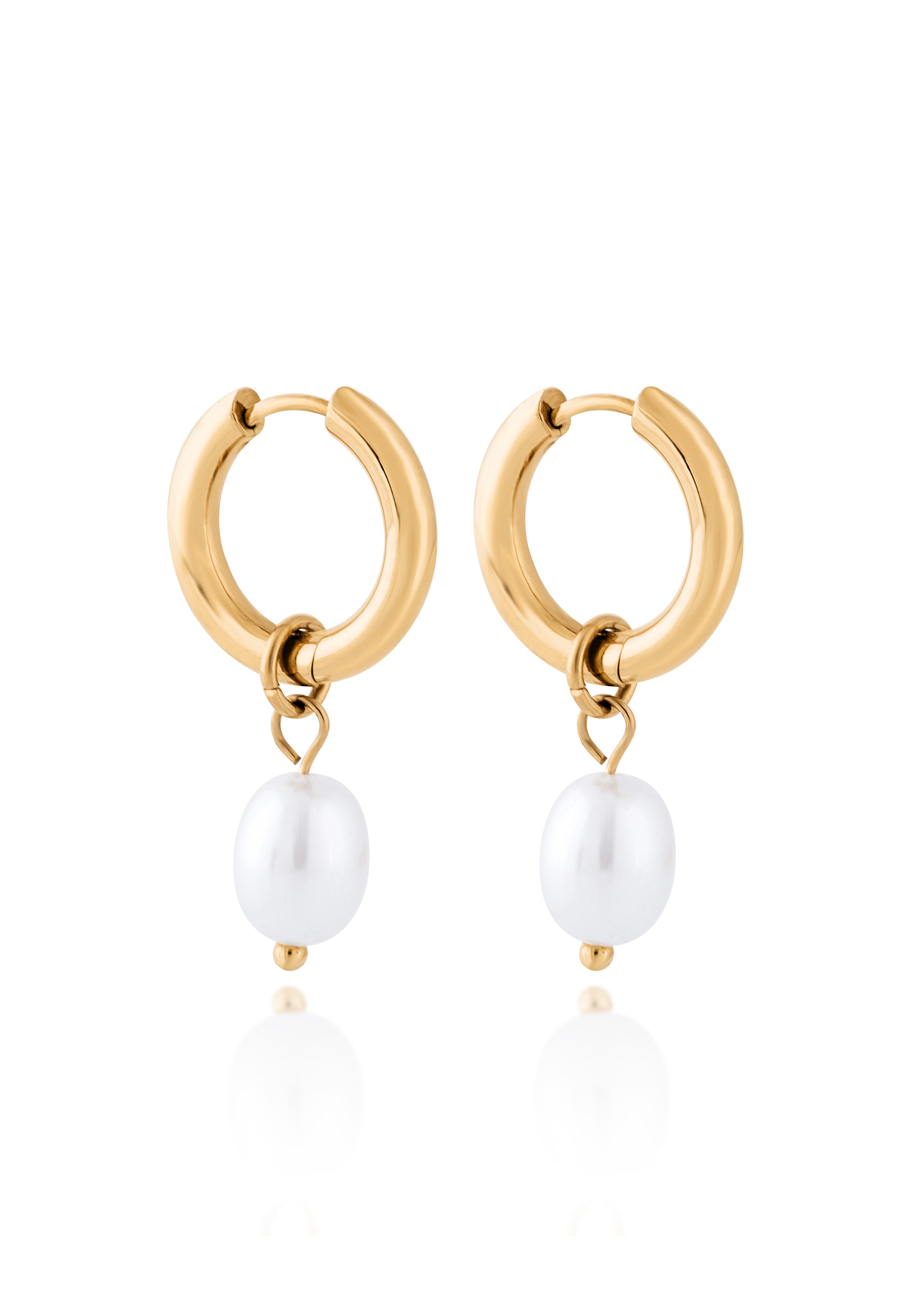 Eleganza barocca con un tocco moderno. Il Brilliance Earring presenta un design a cerchio snello realizzato in acciaio inossidabile color oro lucido, abbinato a una singola perla barocca che aggiunge fascino organico e movimento. Un sottile contrasto tra struttura e fluidità – perfetto sia per l’uso quotidiano che per occasioni speciali.