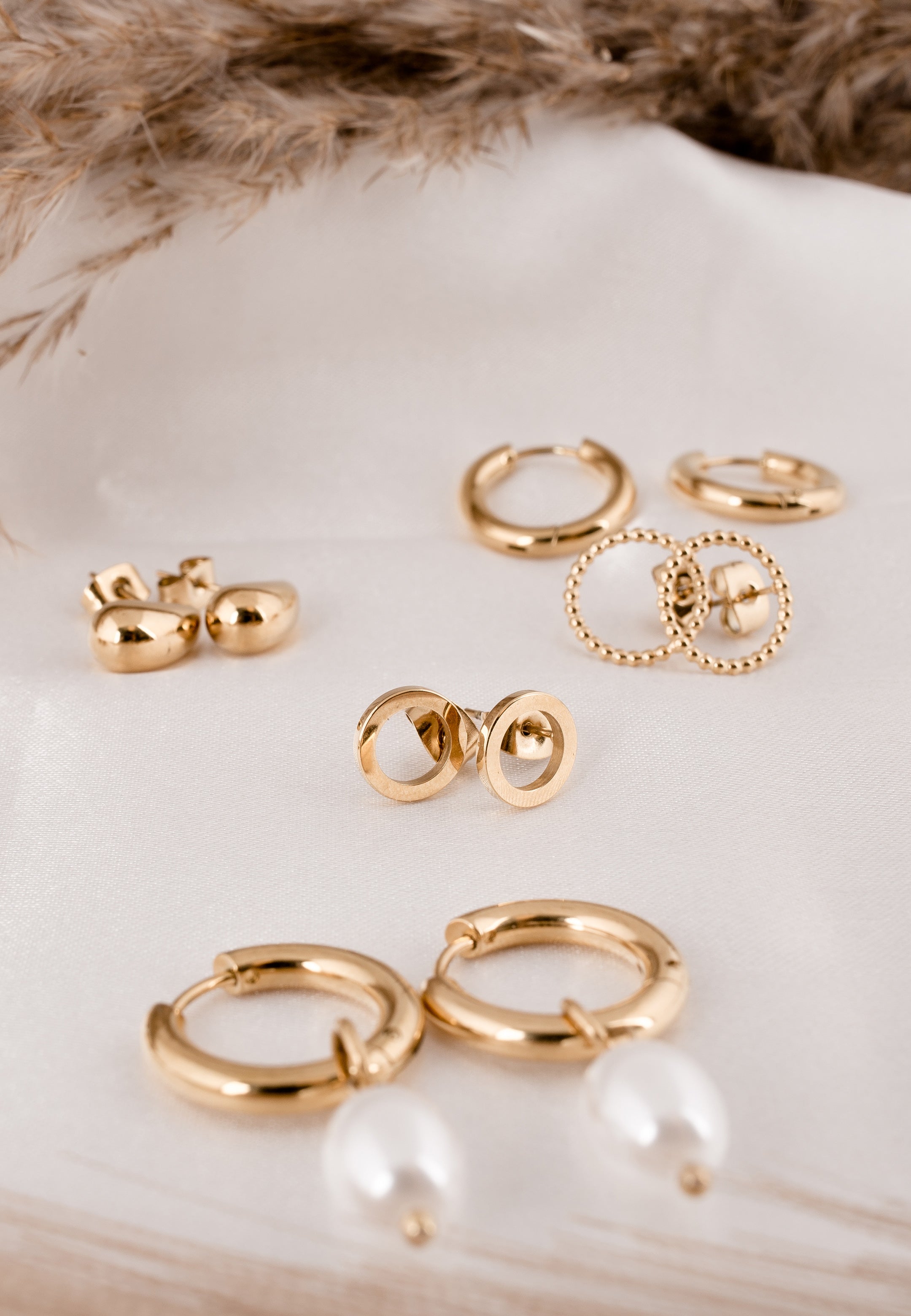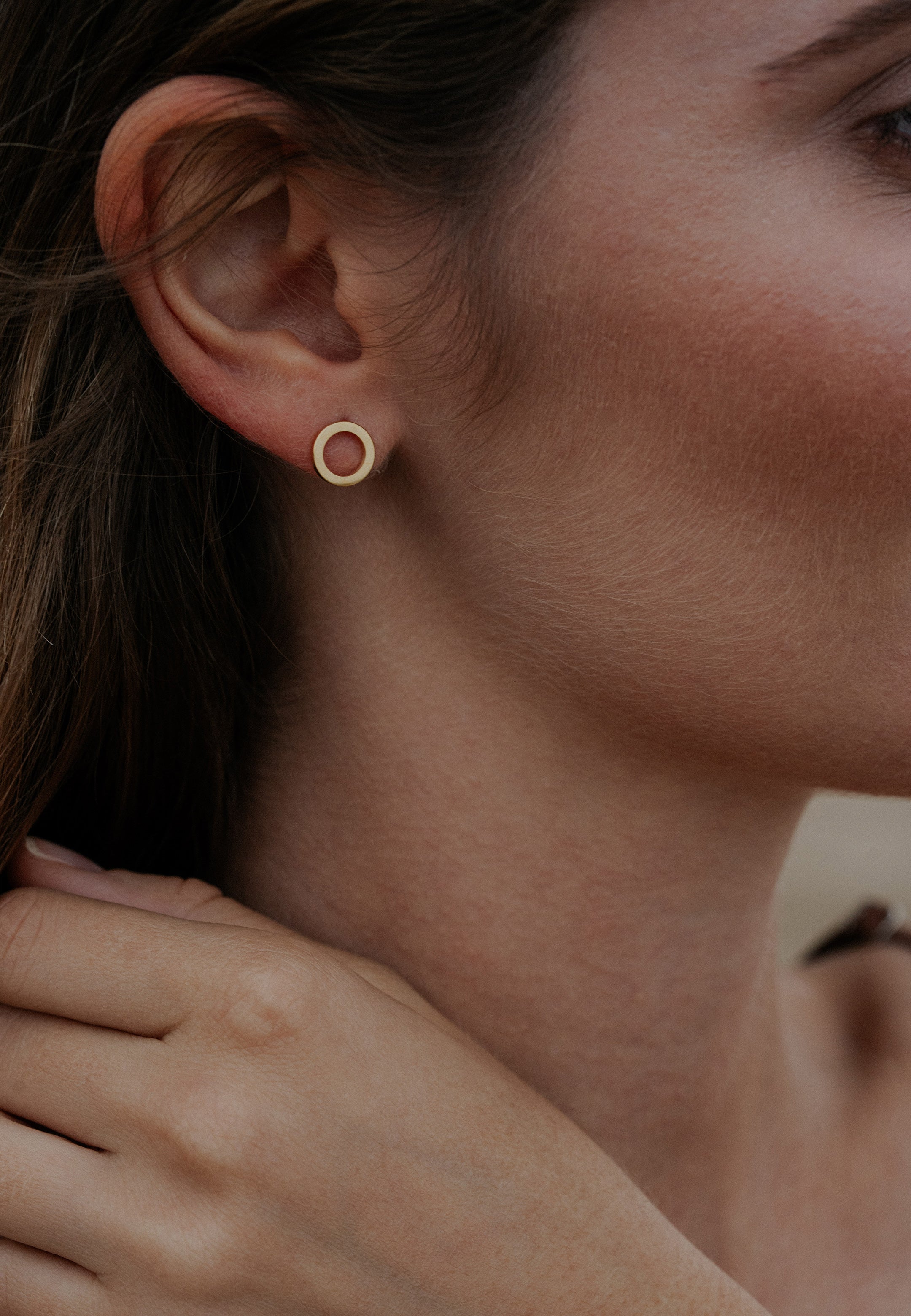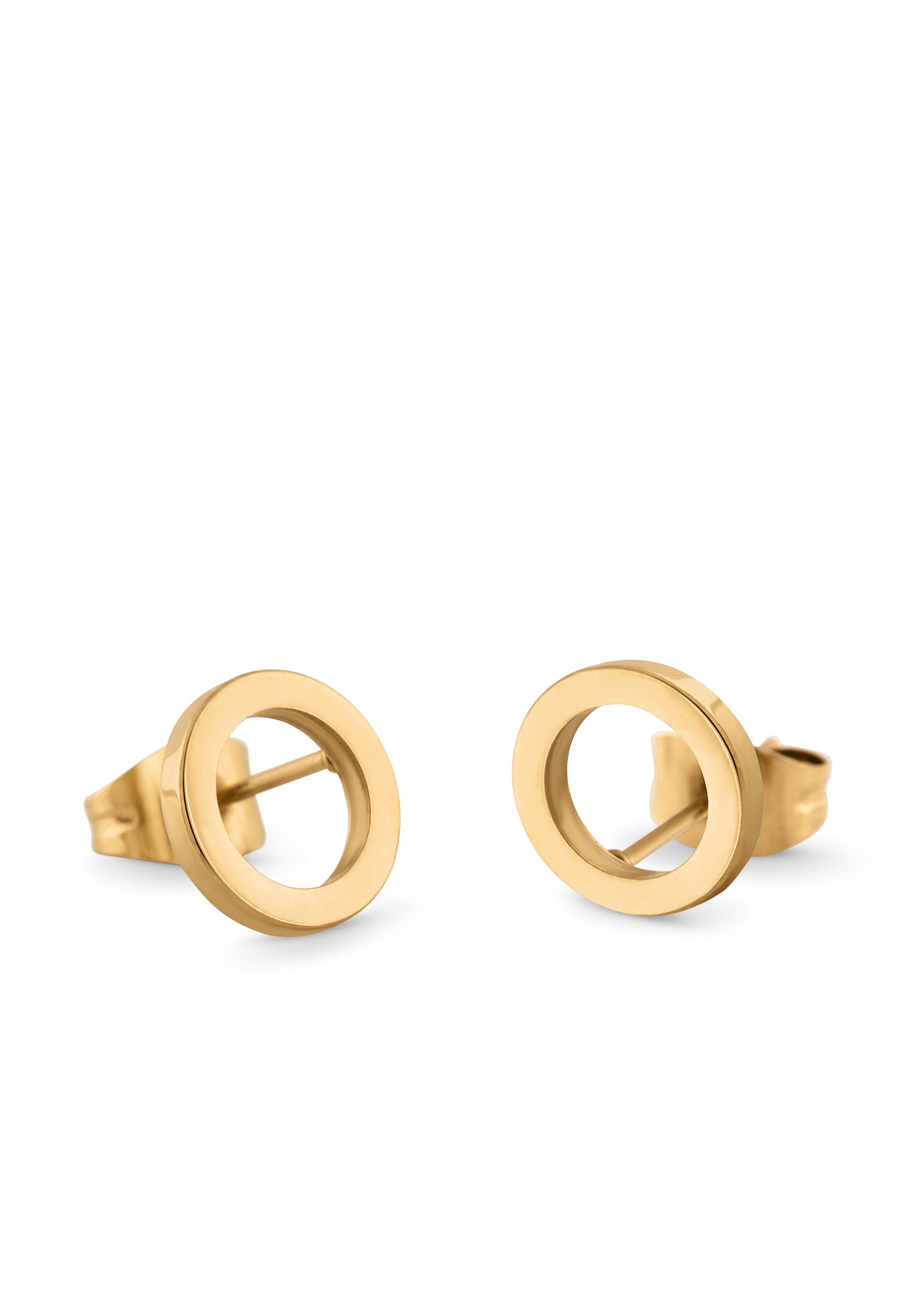 Minimalistyczna przejrzystość w najczystszej formie. Kolczyk Purity to ponadczasowy wzór sztyftu z delikatnym otwartym kółkiem, wykonany z polerowanej stali nierdzewnej w złotym odcieniu. Subtelny i uniwersalny, dodaje wyrafinowanego blasku Twojemu zestawowi kolczyków – lub pewnie prezentuje się samodzielnie.