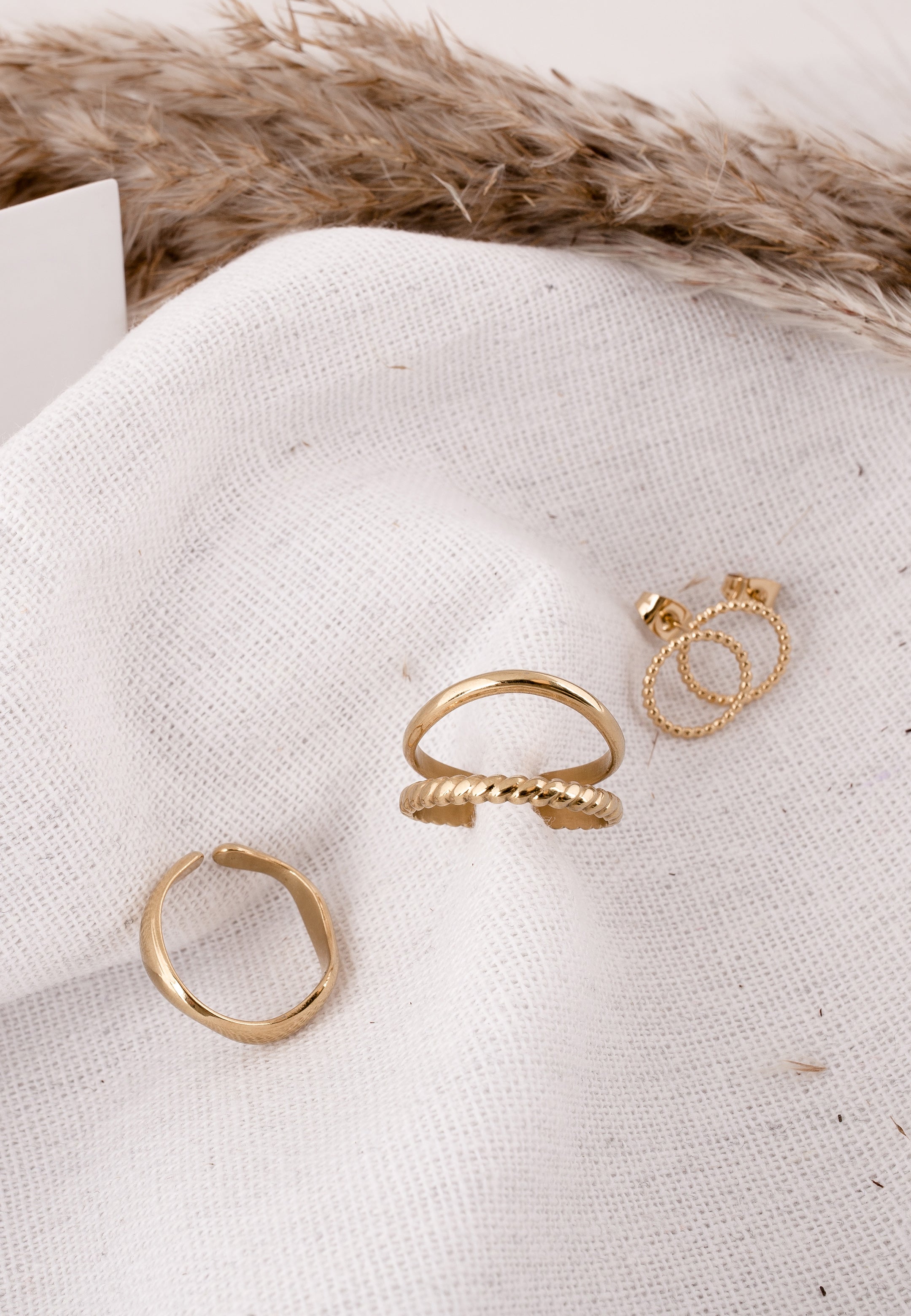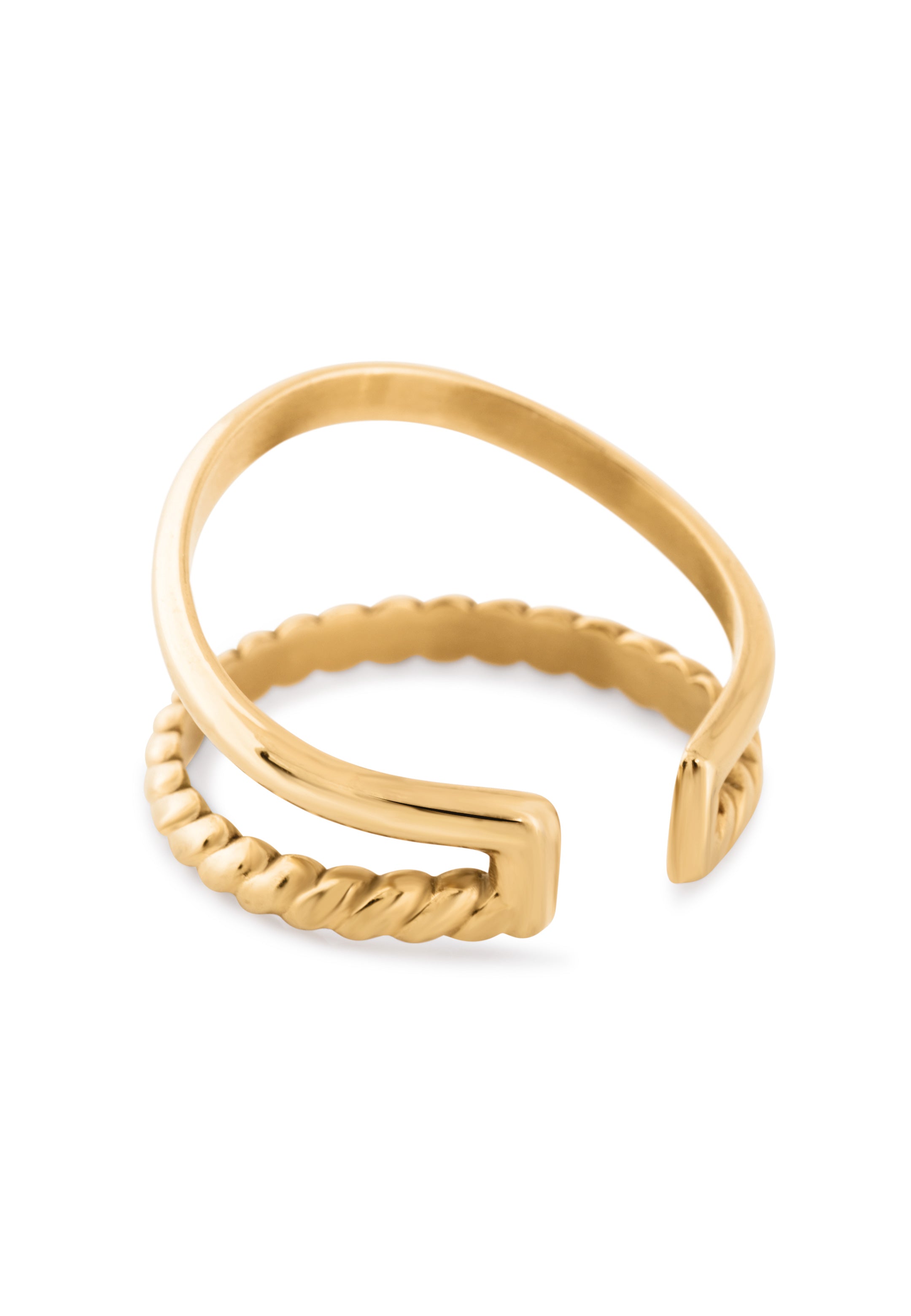 Odważny blask z delikatnym detalem. Pierścień Promienności łączy dwa kontrastujące faktury – gładką obrączkę i skręcony motyw liny – w jednym eleganckim, otwartym wzorze. Noś go jako wyrazisty akcent lub nakładaj kilka, by dodać blasku.