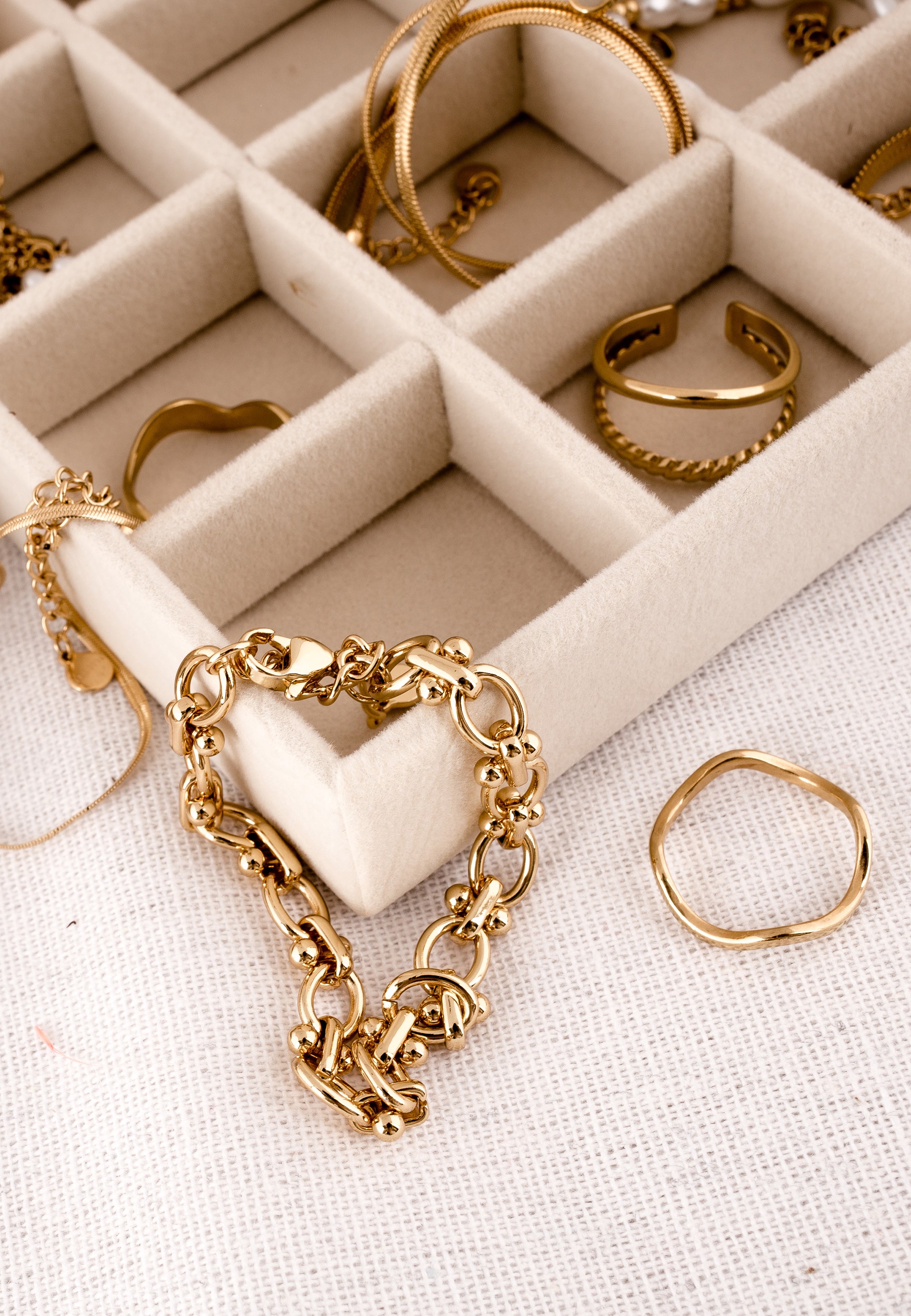 - Materiał: 100% stal nierdzewna (316L), złocona metodą jonową (IP)