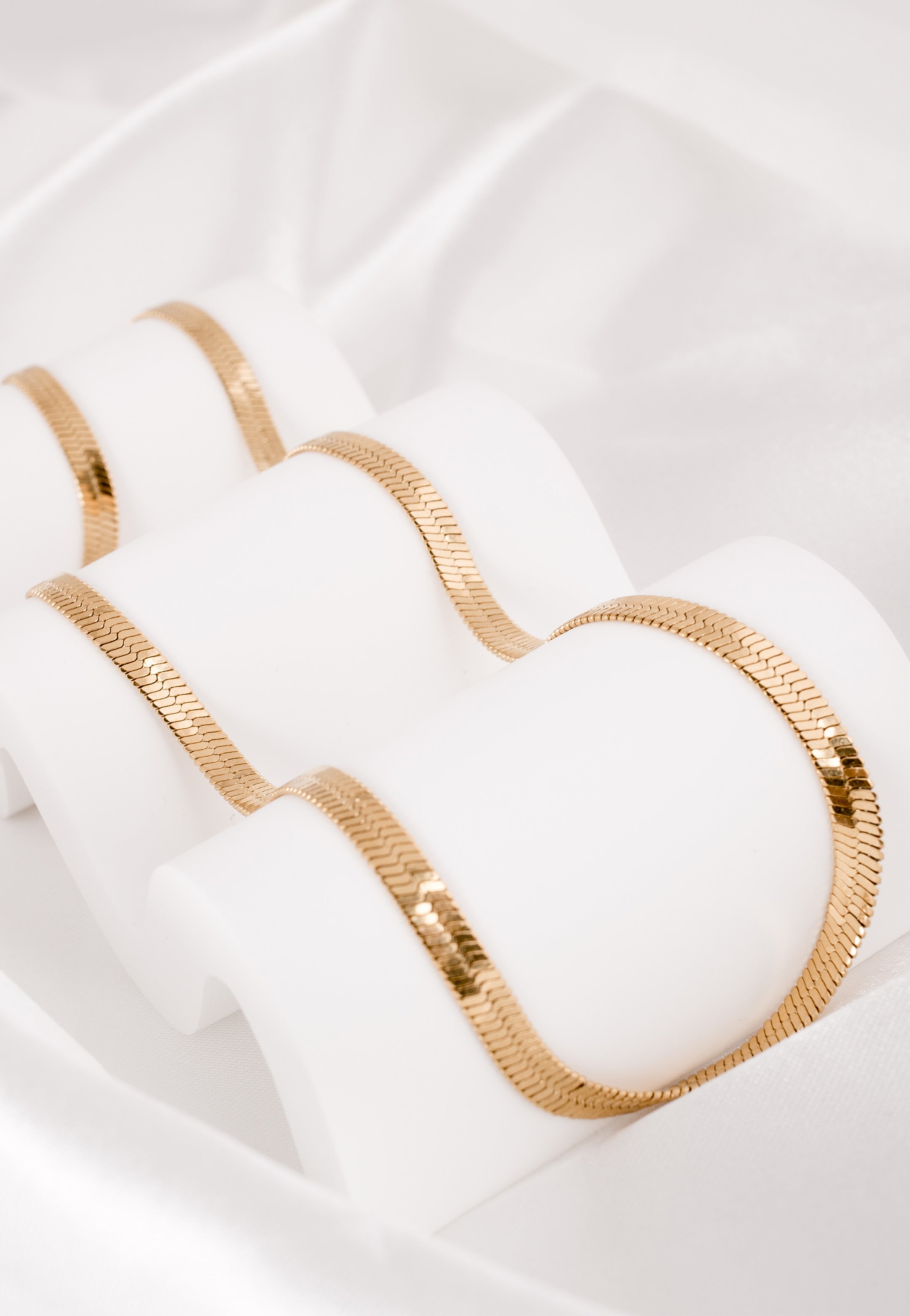 Grace in motion. The Essence Necklace features a flowing, flat chain with a soft wave-like curve that catches the light with every movement. Worn solo or layered, it brings elegant fluidity and bold simplicity to any look.